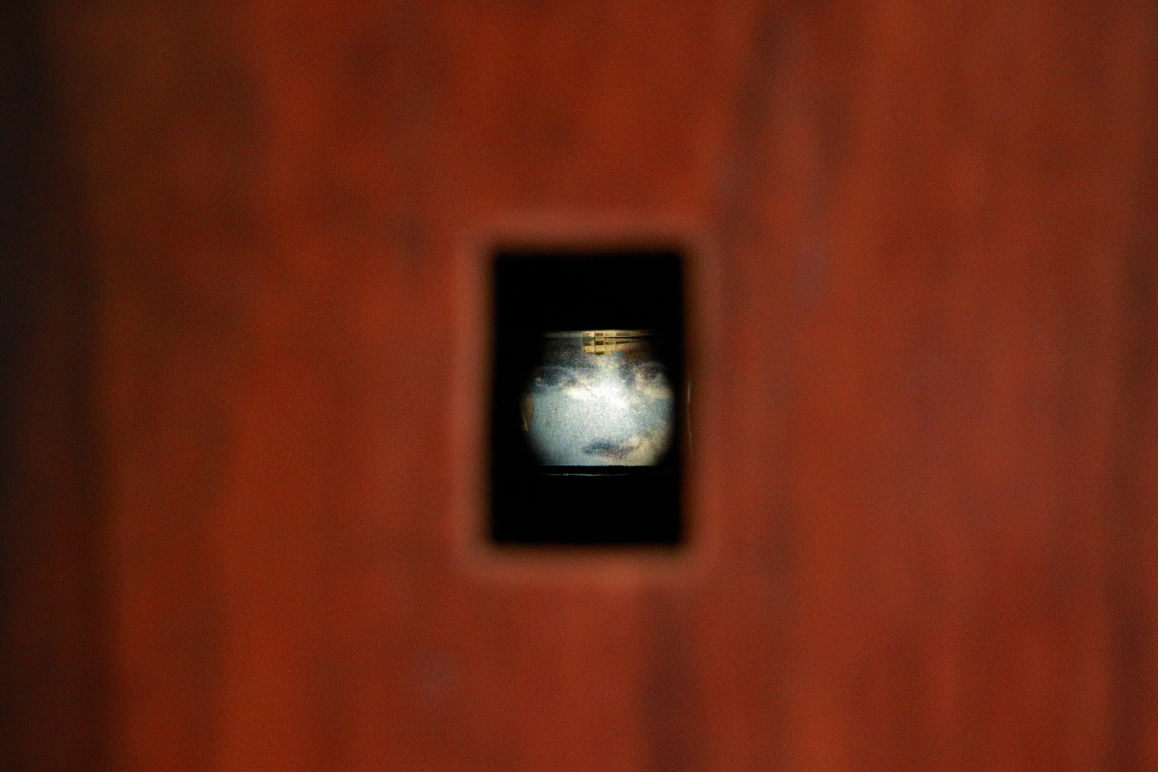 Amnésia 3, Beth Barone & Clarice Sanvicente, objeto (casa de madeira, pintura a óleo, câmera, vidro e impressão de fotografia sobre papel vegetal), 30(A) x 26(L) x 29(P)cm, 2012